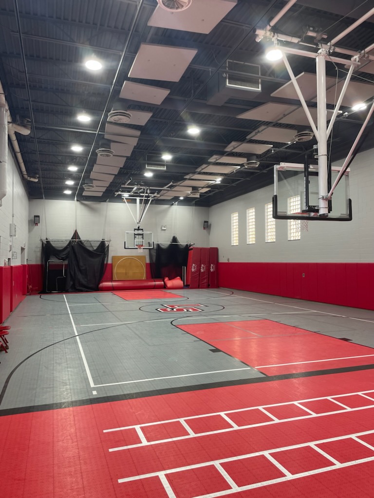 This room is located in the De La Salle building on the top floor. This room also serves as a multi purpose room for our other athletic teams to use when available. It also serves as our visiting team locker room during the football season. It was recently renovated in the Summer of 2023!